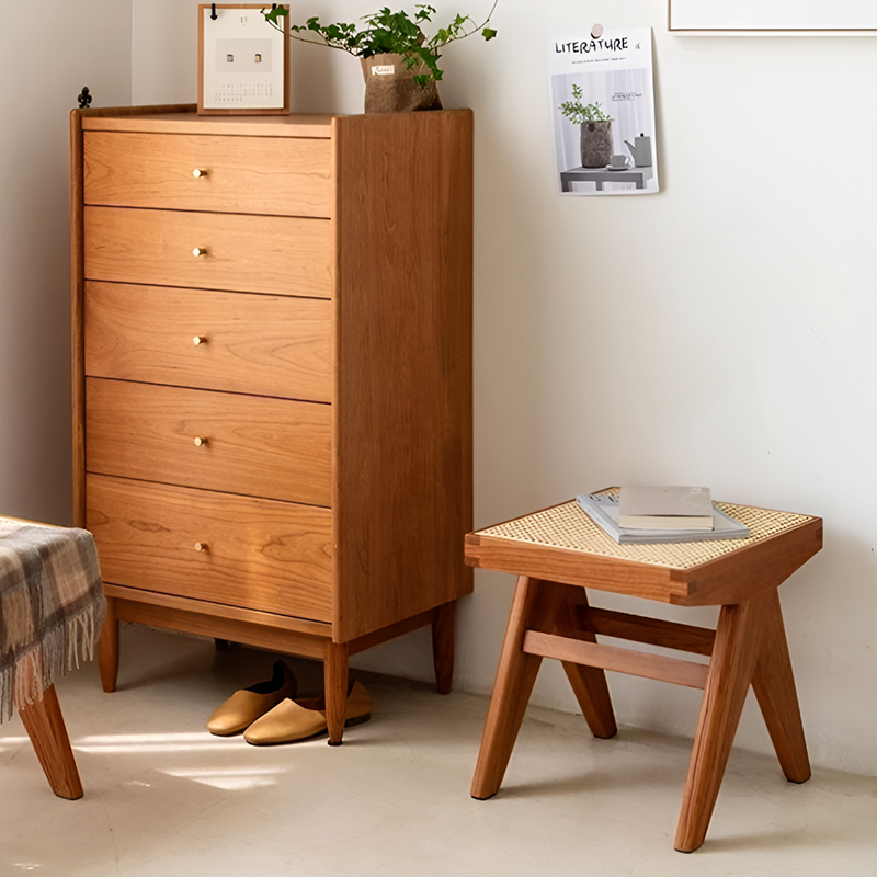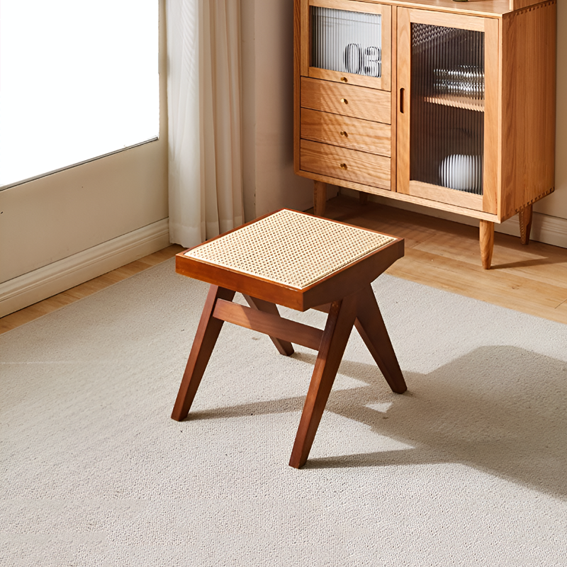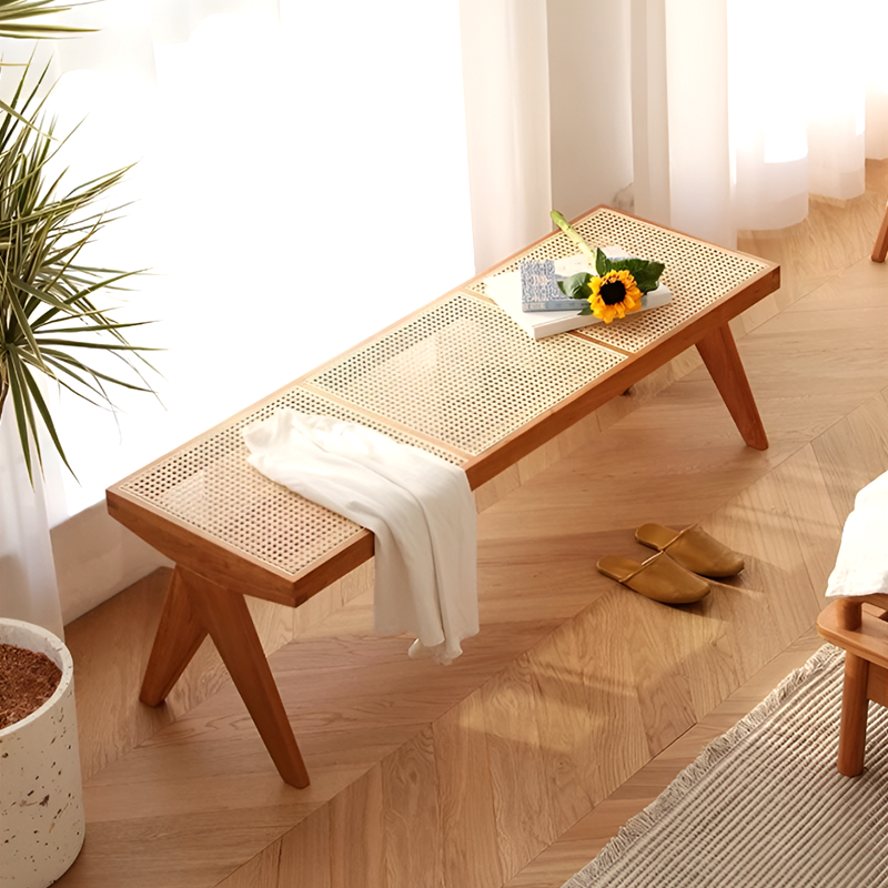 This rattan and solid wood bench is available in single-seat or 3-seat sizes and comes in four finishes: Walnut, Cherry, Log, and Black. The bench features a sturdy solid wood frame and a breathable woven rattan seat. It works well as a bed-end bench, entryway seat, dining bench, or extra seating in the living room. Simple, durable, and versatile, it adds both style and function to any space.