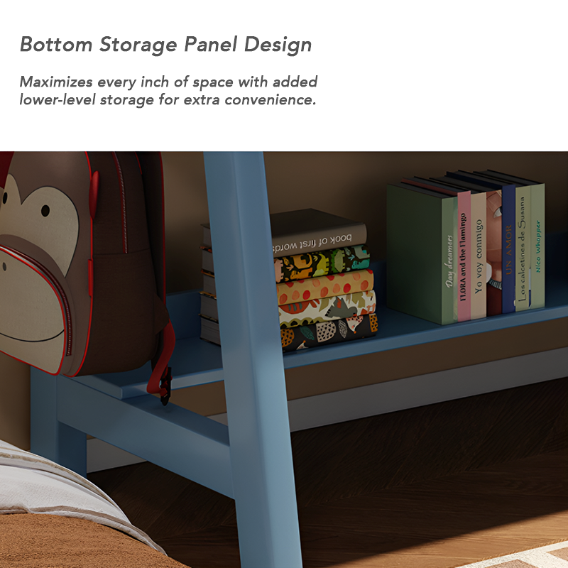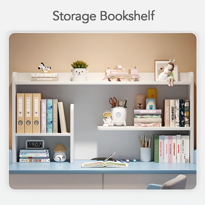 Integrated Bookshelf: Multi-tier shelving keeps books, toys, and stationery neatly organized.
