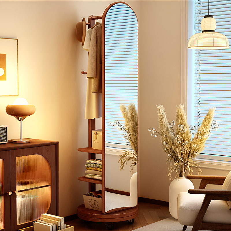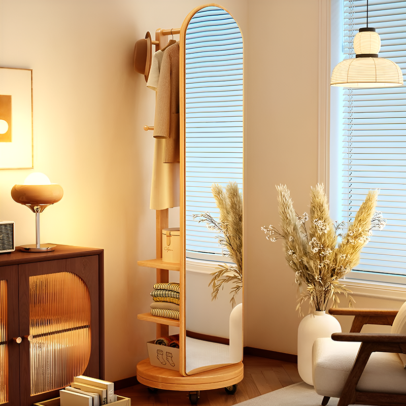 Upgrade your bedroom or entryway with this Rotating Full-Length Mirror with Wheels, a multi-functional furniture piece designed to blend elegance, utility, and modern living. Crafted from premium solid wood, this mirror stand is more than just a reflective surface, it's a versatile corner organizer that keeps your essentials in one stylish place.